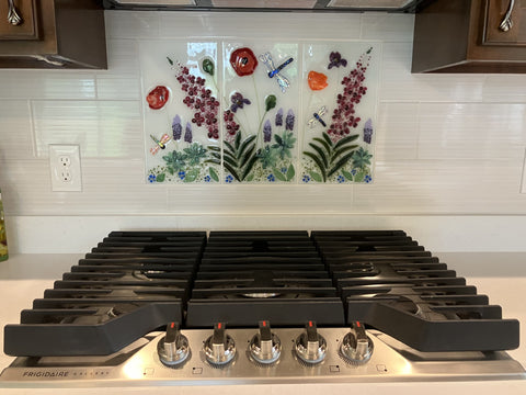 Measuring 14 x 24", this piece includes an assortment of Alaskan wildflowers with dragonflies buzzing through.